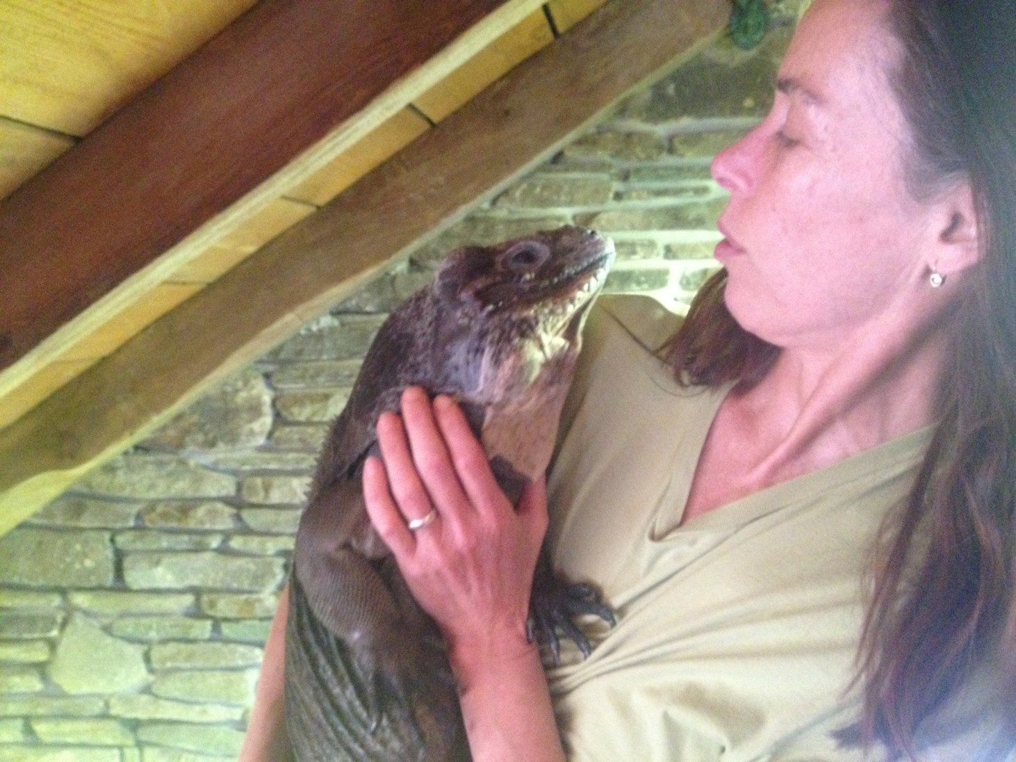 Here’s a photo of Emo and me. Emo is a rhinoceros iguana, in the same genus as the Jamaican iguana: